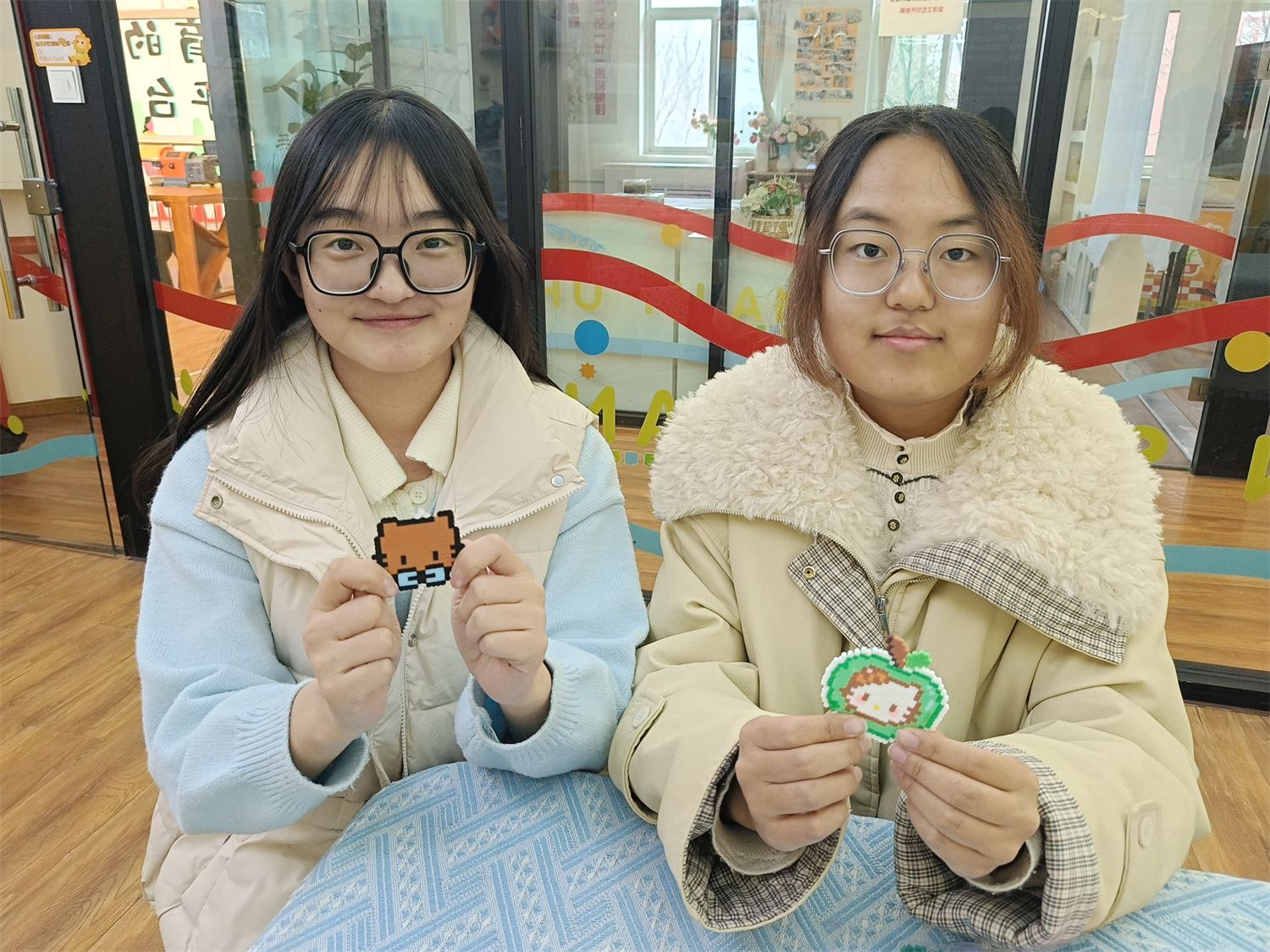 如今,玉米叶花束静静绽放在书桌,拼豆小挂件陪伴同学们走过校园的每个角落。无边书院这两场手作之旅,一场回归乡土自然,一场沉浸色彩治愈,形式不同,却同样温暖。它们让同学们在忙碌的校园生活中停下脚步,用双手创造美好,用心感受温暖。