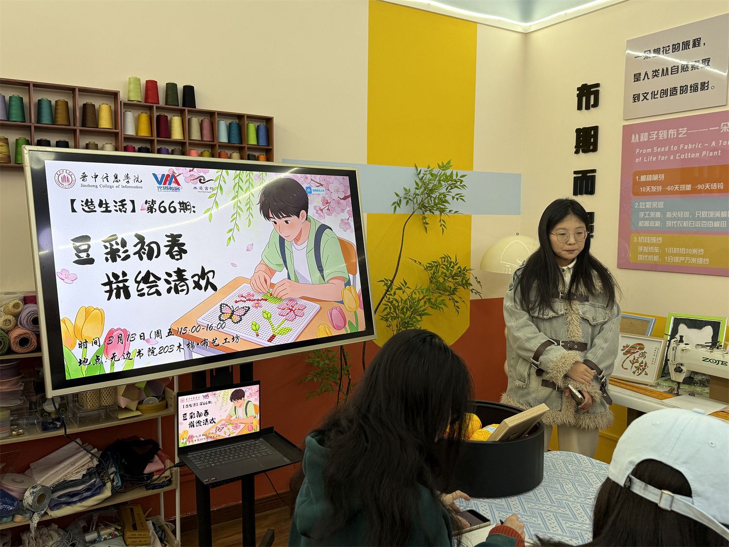 3月13日15:00,【造生活】第65期“豆彩初春,拼绘清欢”拼豆活动在203木棉·布艺工坊温暖开启。在五彩斑斓的拼豆世界里,大家以指尖的耐心与专注,拼贴出属于自己的春日物语。