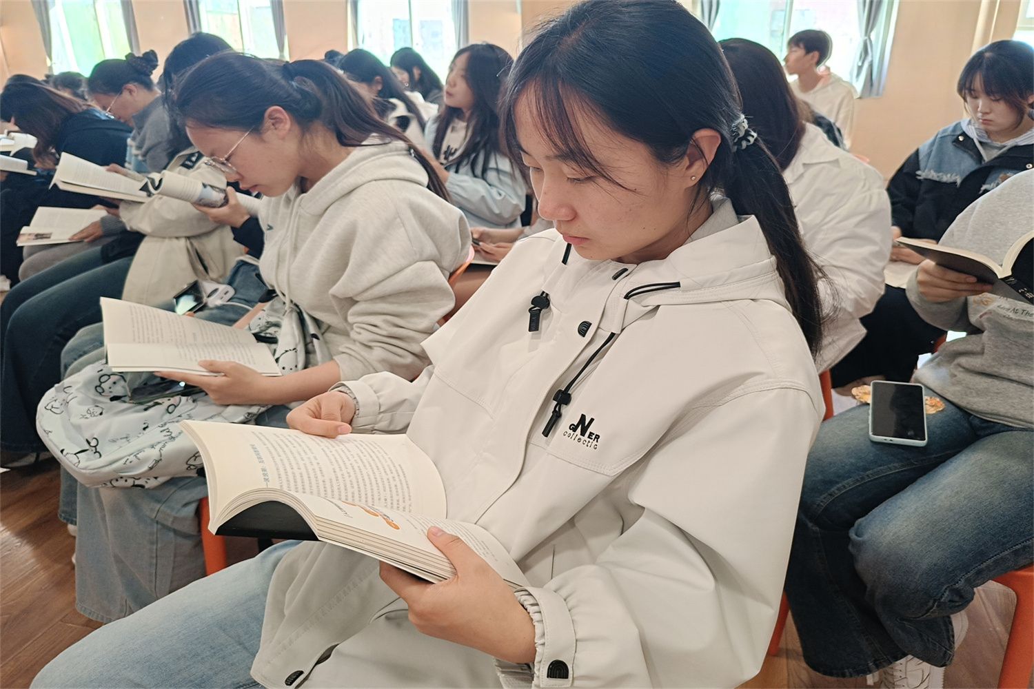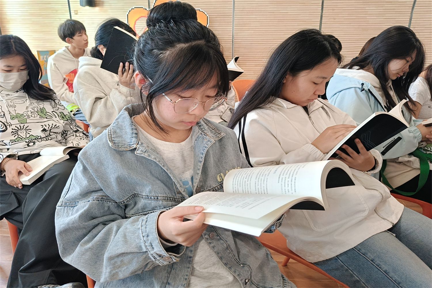 一番轻松交流后,现场进入15分钟自主阅读环节,同学们沉浸在《AI未来式》的文字中,低头翻阅、执笔勾画,将老师的讲解与书中内容相互印证,在静谧中沉淀思考、梳理疑惑。两位老师穿梭其间,不时驻足点拨,耐心解答同学们的疑问,引导大家精准把握书中精髓,为后续深度交流筑牢基础。