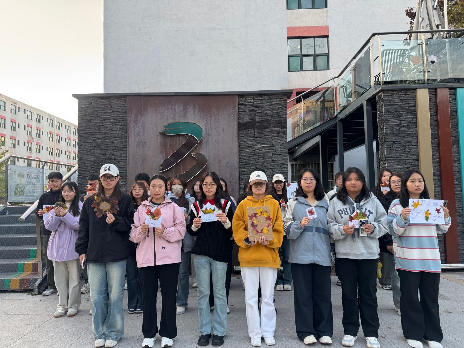 活动尾声,同学们纷纷举起自己完成的“树叶花瓶”合影留念。镜头前,一张张洋溢着成就感的笑脸与一件件独具匠心的作品相互映衬,不仅记录下创作的成果,也留存了这段与秋日对话、以双手创造美好的温馨时光。