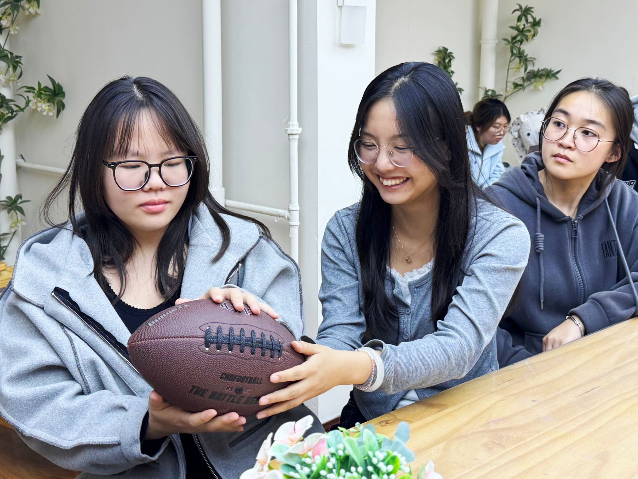 互动环节气氛热烈,同学们围绕现实关切与运动困惑踊跃提问,问题从“橄榄球运动是否安全”“怎样加入校队”延伸到“没有身体优势如何参与”等多个层面。石文斌并未直接给出“标准答案”,而是结合校队经历与实战案例,从“团队价值与运动精神”的维度理性回应。他引导大家思考,橄榄球的魅力远不止于胜负,更在于过程中对队友的信任、对规则的敬畏以及在策略博弈中实现的自我超越。现场他还邀请同学们触摸橄榄球、体验基础传接,有同学在交流后感慨:“原来理解橄榄球,就是在理解一种浓缩的团队哲学与人生姿态!”