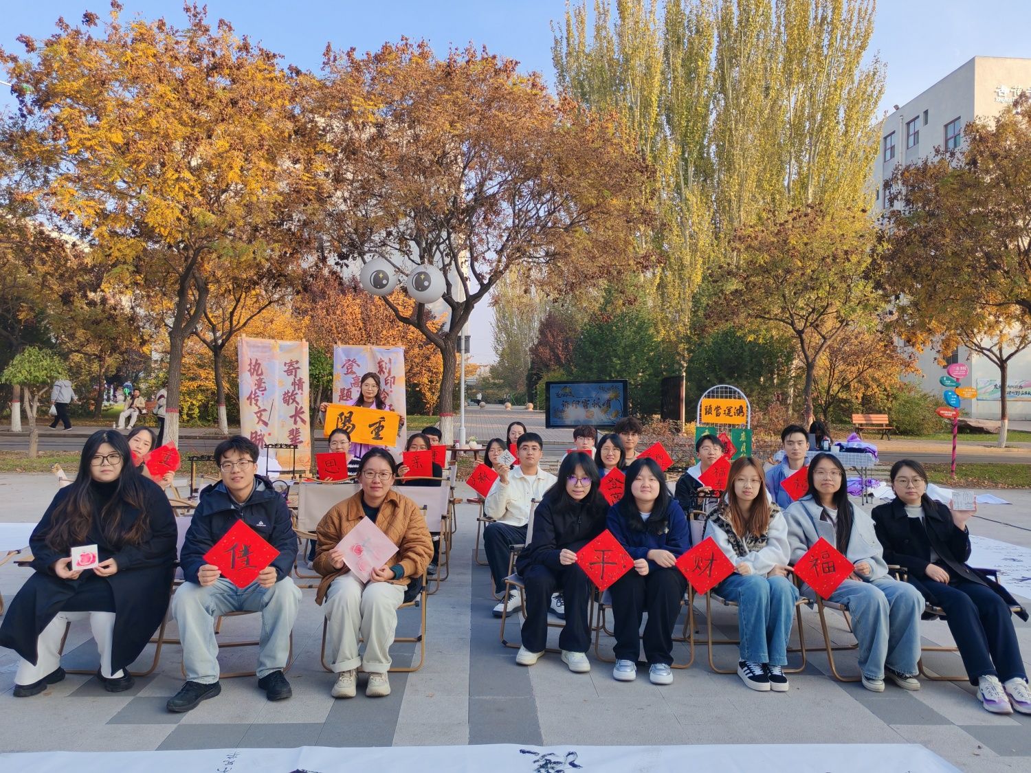 10月29日,三达书院于行广场举办“创美四季・秋——重阳雅集・诗印寄秋情”活动。本次活动围绕重阳节“登高、赏菊、敬老”三大传统主题,通过“登高题诗”“刻印铭志”“吟诵抒怀”三大环节,引导学生沉浸式体验传统雅事。在“登高题诗”环节,主持人现场演示毛笔书写技巧并巡回指导,学生可在巨幅宣纸上挥毫泼墨,书写经典或原创诗句;“刻印铭志”环节中,学生在指导下亲手雕刻“安”“康”“寿”等主题橡皮章,在安全实践中感受篆刻艺术的魅力;完成作品后,学生于“吟诵抒怀”环节为诗作钤印并深情诵读,分享对亲友的感恩与祝福。此次活动是一场生动的传统文化教育课,通过“做中学”的方式,有效提升了学生的艺术素养,坚定了文化自信。