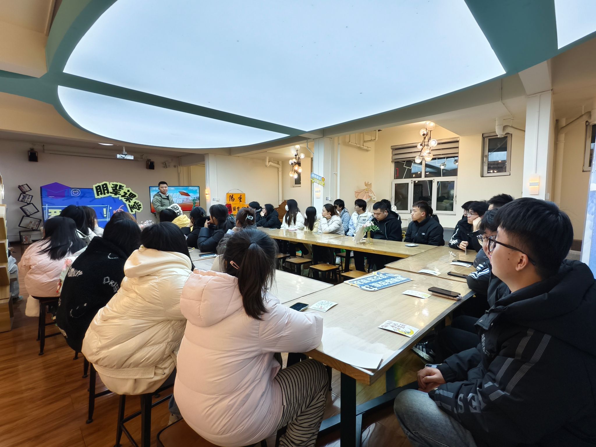 11月,三达书院开展4期“朋辈课堂”系列活动,围绕水上运动与国防教育两大主题,以“理论+实践”模式精准赋能学生成长。水上运动系列中,“激流勇进,浪里白条”理论课系统讲解泳姿与安全知识,随后的“征服水域,做自己的勇者”实践课于游泳馆开展,实地练习所学理论知识,在挑战中历练自我。国防教育系列分别以“学长领航・参军指路”和“逐梦军营・青春无悔”为主题,深入解析征兵政策、体检要点与军营实况,为学生描绘清晰的参军路径与成长图景,强化理想信念,有效发挥了朋辈引领作用。