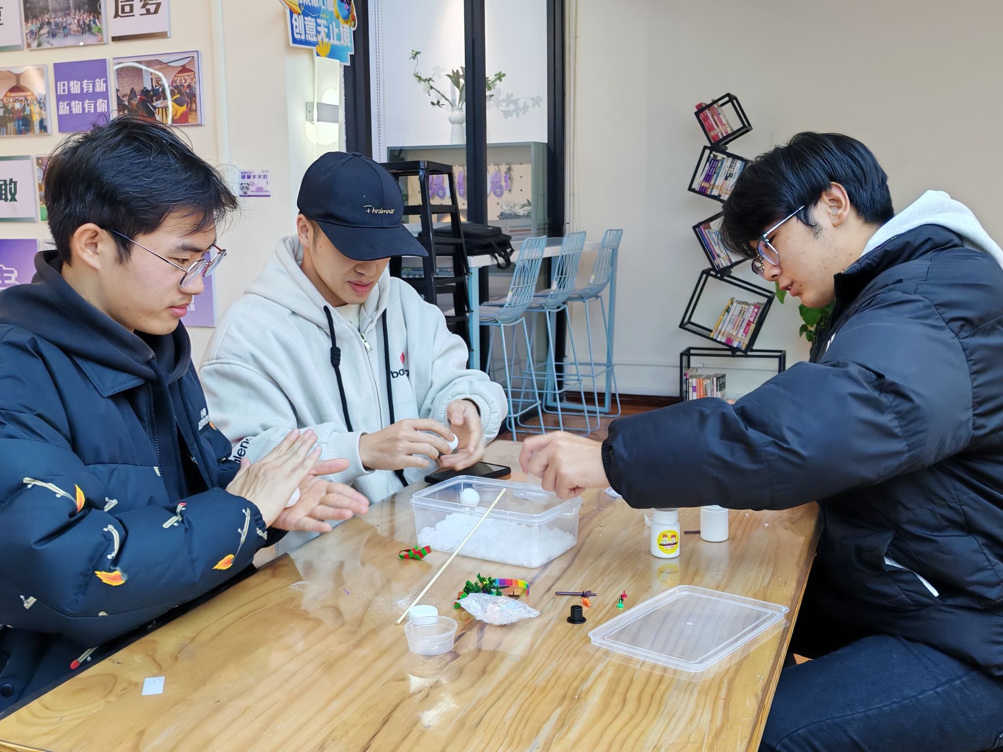 11月19日,三达书院于意空间举办创意掘金计划第40期“小雪寻趣・科学造雪”活动。在主持人贺振华的引领下,同学们首先了解聚丙烯酸钠类高吸水性树脂的物理特性与吸水机制,理解“人造雪”背后的材料科学原理。在实践环节中,同学们通过自主调整粉水比例,亲手配制出从细腻粉雪到蓬松鹅毛大雪等不同形态的仿真雪景,运用粘土、马克笔等材料创作专属雪景作品,在动手实践中感受科学原理的奇妙,在科学与艺术的交融中激发想象力与创造力。