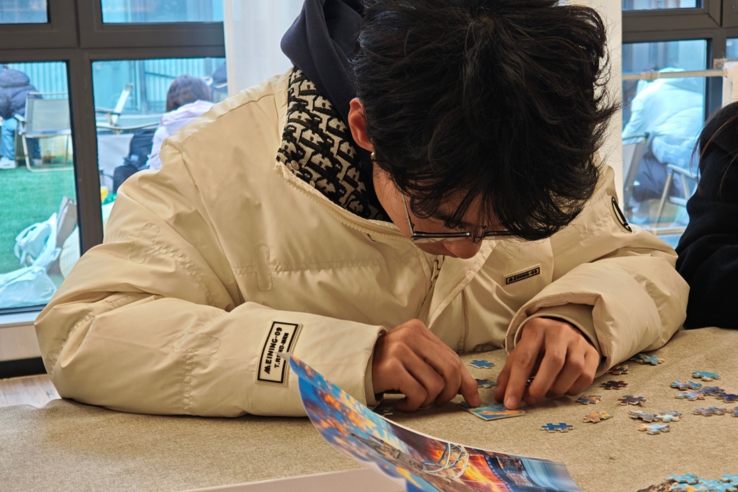 “活动结束时,桌上的拼图还缺着最后一角。我与我的组员们相视一笑,没有懊恼,只有心照不宣的释然。就像张派老师说的那样‘有时候,未完成比完整更接近真实’。残缺的拼图像极了生活的隐喻——我们总在和时间赛跑,渴望圆满,却在追逐完美的过程中忽略了拼贴的过程本身就已构成意义。每一片放对位置的拼图,都是当下最尽力的选择;每一处未填补的空白,都预留了想象的余地。”