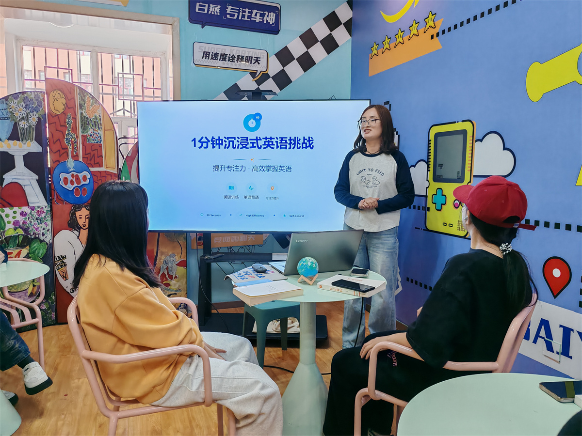 一分钟能做什么?刷几条短视频,发一会儿呆,或是回复一条消息。而在白燕书院,一分钟被赋予了全新的意义。4月17日15:30,白燕书院116未WAY·智慧搭建空间内气氛热烈,以“1分钟英语阅读+1分钟单词背诵”为核心的“别掉线!1min挑战”主题活动如期举行。本次活动由白燕书院全生异科导师、商务英语学院赵瑶瑶老师带领,吸引众多学子在限时沉浸式学习中突破自我,探索英语能力与专注力的双向提升。