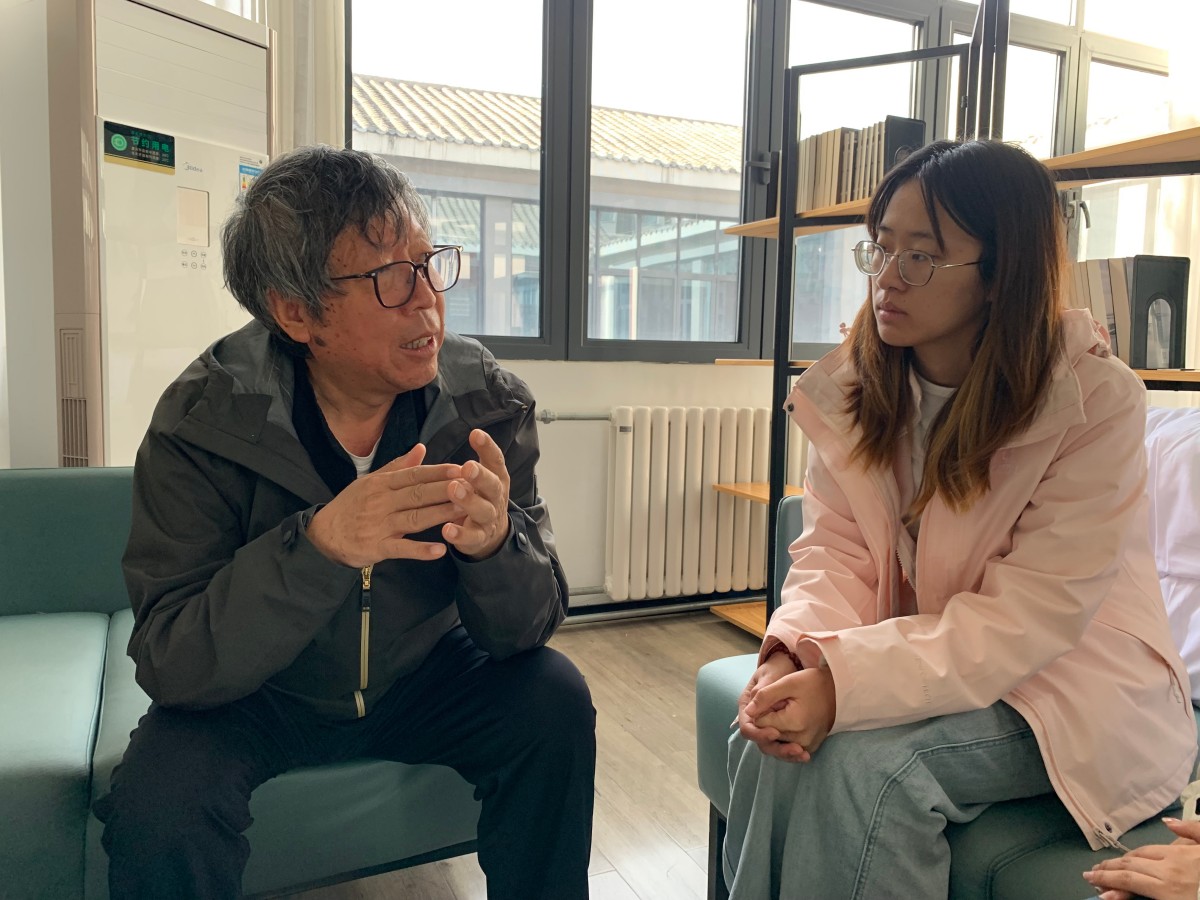 张院长首先与况也工作室非·常规设计部摄影工坊的刘阳老师和同学们进行了交流。大家的展览构想先获得张院长大大一个“赞”!紧接着,张院长便提议把目光投向身边的“宝藏”:空水瓶、废纸箱,这些平时瞧不上眼的小家伙,在用木龙骨搭骨架,铁丝来固定,把废纸、废纸箱“艺术化拼贴”一番,打造出独一无二的展墙基底,最后将精选的摄影作品张贴其上。一个低成本、高创意,还能亲手DIY的独特影像展览便可以应运而生。张院长还鼓励大家,有机会去平遥国际摄影展当志愿者,近距离感受影像的魅力,提升自身的影像叙事能力。