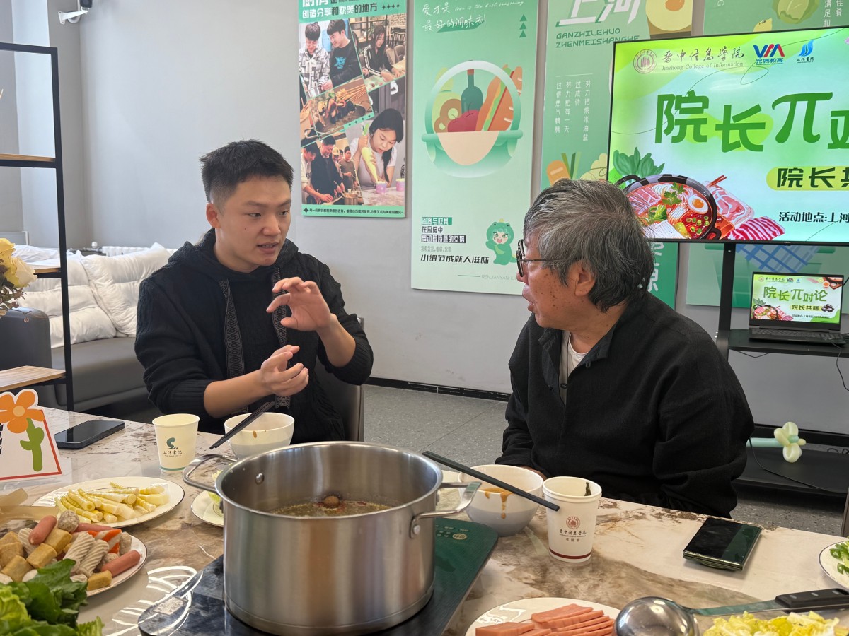 讲座结束后,大家围坐一起,吃着美食,聊着影像创作灵感、策展思路落地那些事儿,氛围轻松又愉悦。当大家围绕短视频创作瓶颈讨论时,张院长引用新媒体影像理念:“放低视角,从日常中捕捉未被言说的情感”。他建议用手机记录市井烟火中的“决定性瞬间”,通过序列化剪辑构建完整故事线。大家在轻松的交流中,不仅分享了自己的想法和困惑,也从张院长那里获得了宝贵的建议和指导,简直是“灵感充电宝”时间!