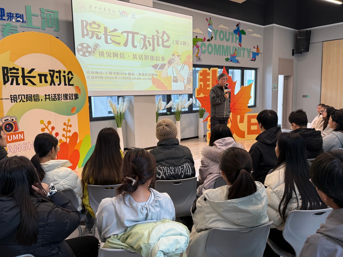 在上河书院204 圆心·青春社区剧场里,张国田院长开展以“国际摄影大展中的策展逻辑与幕后故事”为主题的讲座。活动现场张院长金句频出:“拍摄需要浪漫情怀,对世界充满好奇与热爱的眼光,但光有情怀可不行,还得有清晰的思维梳理!”他抛出创作前的“灵魂三问”:“我是谁?我要干什么?我要怎么干?”张院长强调:“只有明确了内心真正想表达的,你的创作才有根,才能打动人心!”随后他分享了在五村参与扶贫工作的经历,那段日子让他明白:“真正的改变,不仅是改变现状,更是改变观念!”这话用到影像创作上也一样——“必须亲身去体验,才知道如何表达!有想法、有策划,就得勇敢做出来,落实!行动,是唯一的答案!”当有同学灵魂发问“摄影的定义是什么”,张院长沉思片刻,给出了超酷的答案:“摄影就是记录时代!”他解释道,“一种是真实复刻现实的‘历史存证’,另一种是融入创作者视角与情感的‘艺术表达’。两种路径,共同构成了摄影的万千气象!”