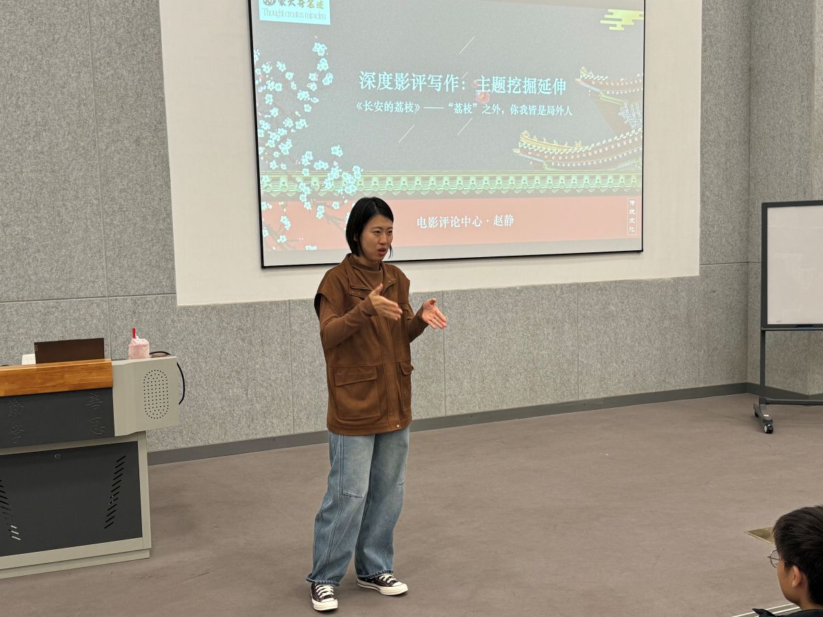 现场,赵静老师化身“光影侦探”,围绕视听语言展开了一场“沉浸式”教学。她结合经典影片的精彩片段,一点点“解剖”导演是如何通过镜头“画龙点睛”,表达自己的奇思妙想的。互动环节更是火花四溅,赵老师不断“抛出问题”,引导大家打开脑洞,从各种新奇角度解读影片,创新思维的小宇宙“biu biu biu”地爆发!最让人期待的现场影评练习,更是让大家把学到的“武功秘籍”当场练了起来。在互动环节中,老师积极拓展学生们的影评思路,鼓励大家从独特的视角去解读影片,激发学生们的创新思维。而现场的影评练习环节,则让大家能够将所学的知识进行实际操作运用,同学们相互交流创作心得,有效地锻炼了自身的视听批判性思维与文字表达能力。