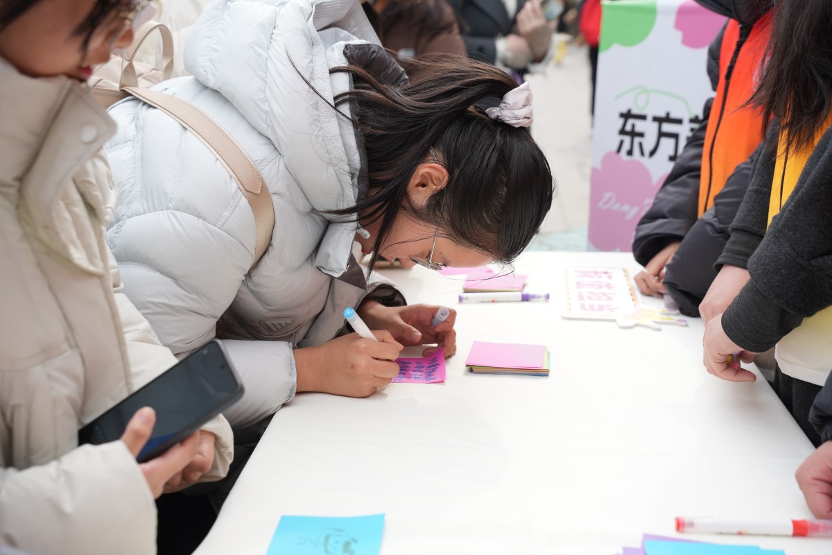 “女生就该文静温柔?”“工科女生都是‘技术宅’?”这些被贴在女生身上的刻板印象,被一笔笔五彩的颜料覆盖。在“她力量分享会”上,淬炼商学院·国际商学院的张楠老师从收纳盒里抽取心事卡片,温柔解答关于学业、人际与自我的困惑。当看到“我总怕自己不够好,不敢争取机会”的留言时,她笑着说:“你不需要完美才值得被爱,你只需要做你自己。”现场的互动小游戏更让欢笑与暖意流淌在每个人心间。在这里,师长不再是讲台上的背影,而是可以并肩的伙伴;女生们不再是需要被定义的群体,而是一个个鲜活、独特的自己。