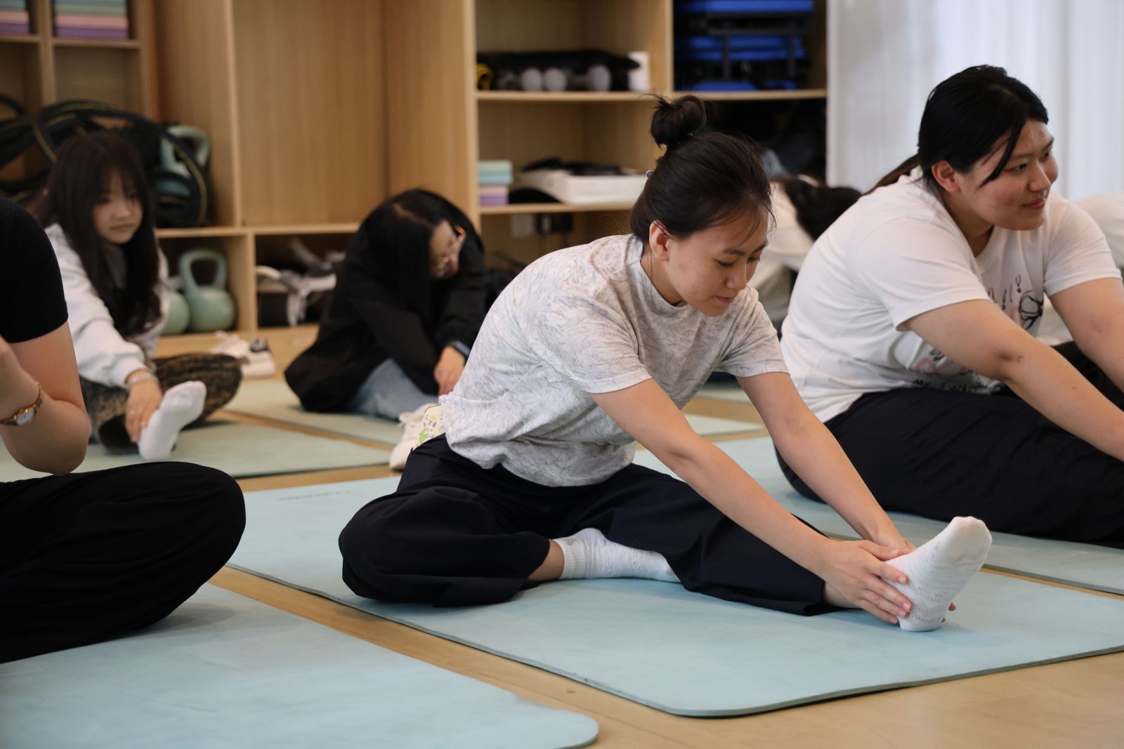 跟着呼吸慢下来,就能听见心里的声音。瑜伽室内,“生活家+1℃社区计划”第13期“月满•邀月归伽”活动,孙庆、曹立娜两位老师带领学生开启瑜伽体验。老师以“吸气时想象月光落进胸腔”为引导,让学生在呼吸与体式的配合中放松身心。分享“如何在忙碌的学习生活中找到内心平静”的小故事,聊起课后短暂冥想的调节方式,也谈及傍晚漫步校园的舒缓感受。当最后一个体式结束,这场瑜伽不仅舒展了身体,也让自己找到了与内心对话的方式,这是属于我们的“静心故事”。