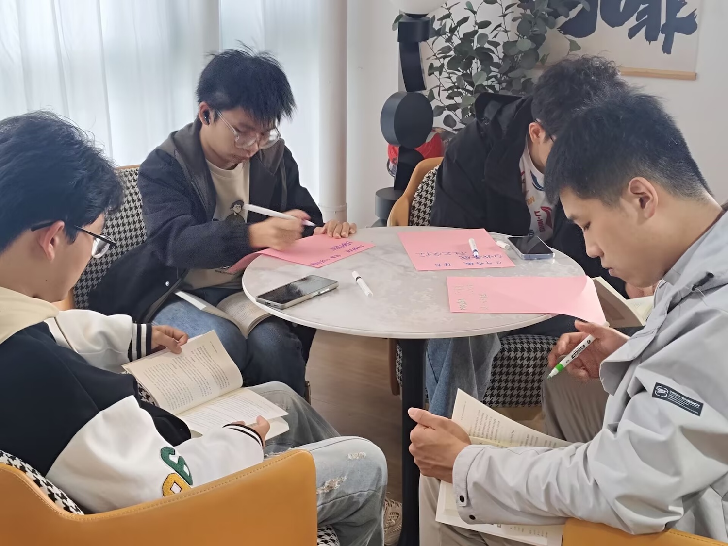 现实困境的探讨,是生命认知碰撞火花的最佳契机。二十位同学分成四组,各执一张聚焦现实的情景卡片,围绕学生成长、教师发展、家庭教育等维度的难题展开讨论——结合校园生活谈学业压力下的自我调节,联系社会新闻聊亲子沟通的痛点,从环境污染对人与社会和谐的阻碍,到上海高架桥虐猫事件背后的生命尊重议题,每一个话题紧扣生活的本质,抽象的“生命维度”有了具体的讨论落点。小组代表发言中赵晋炜同学分享:“我觉得生命的价值不是单一维度的延伸,是长宽高的立体构筑,就像朱永新教授说的,集自然、社会、精神生命之维度,方能成为完整的人。”是的,这些看似遥远的“生命考题”,其实就藏在日常选择与思考里。