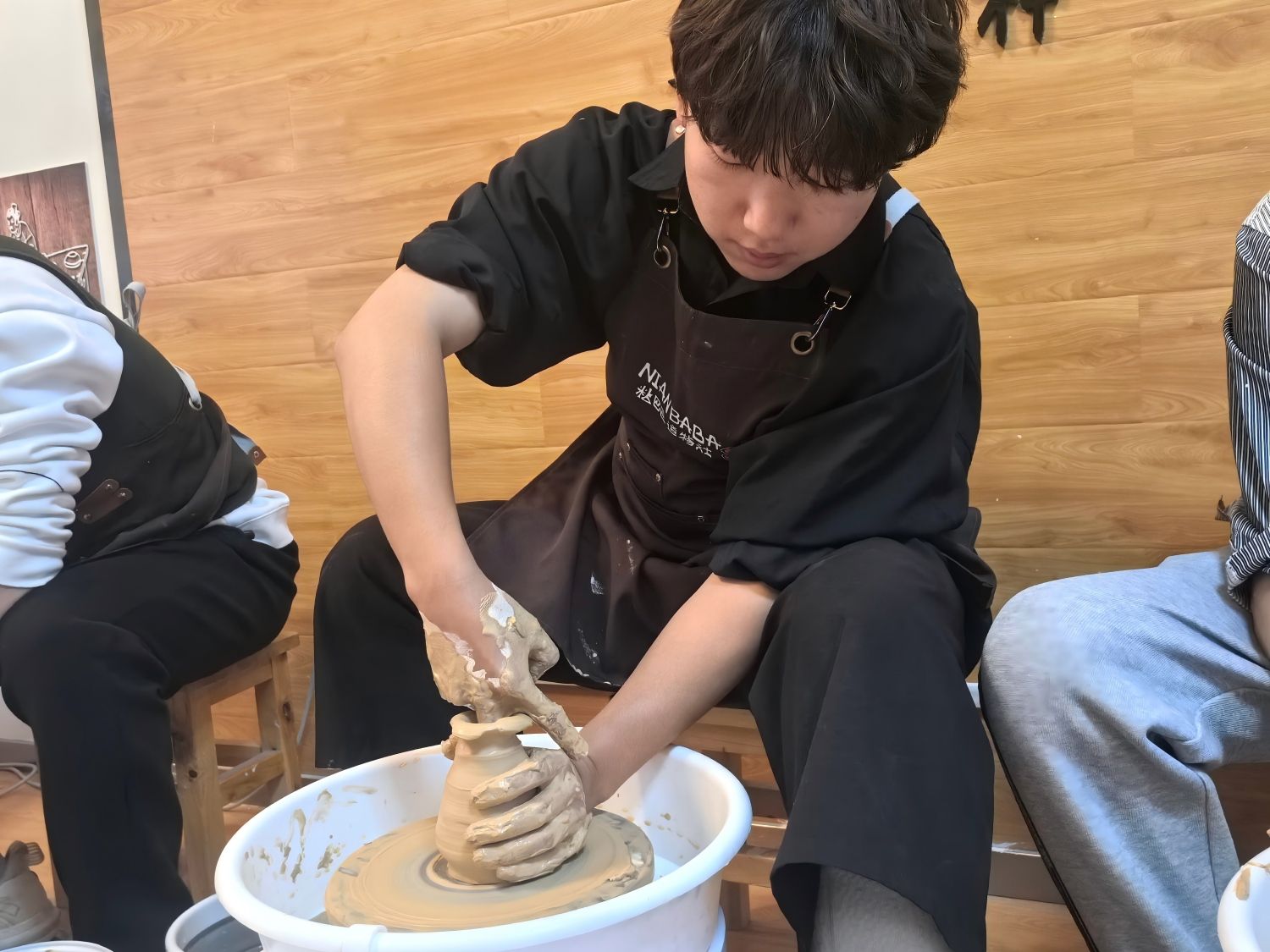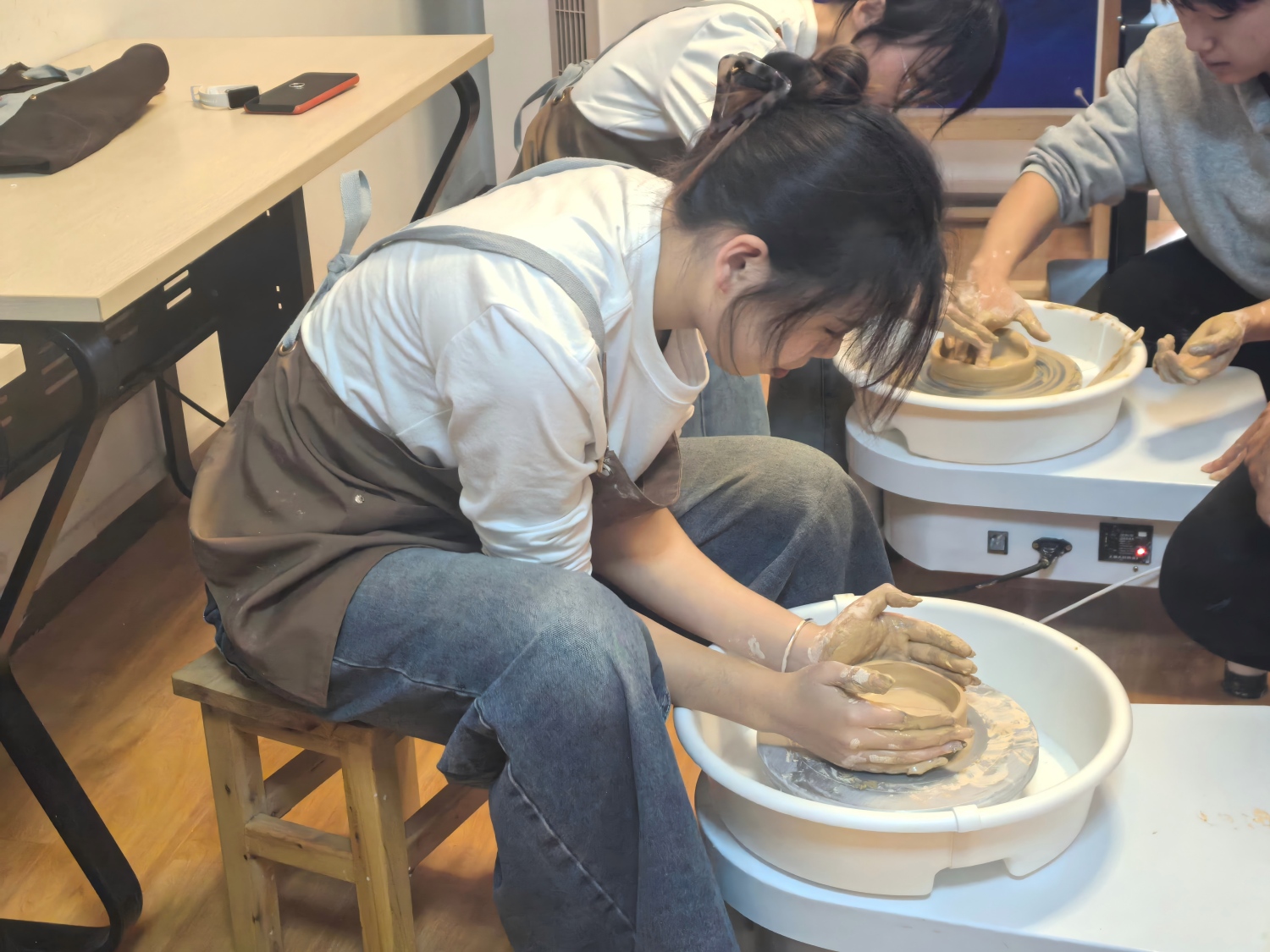 “这两个小时里,手机仿佛从我的世界里消失了。”一位同学在活动后感慨道。在转盘持续的嗡鸣声中,时间呈现出另一种质感——不是分秒必争的急促,而是如陶泥般可塑的流动。韩老师说:“陶轮如人生,转得太快会离心,转得太慢会停滞。唯有找到自己的节奏,才能塑出既坚实又灵动的形态。”