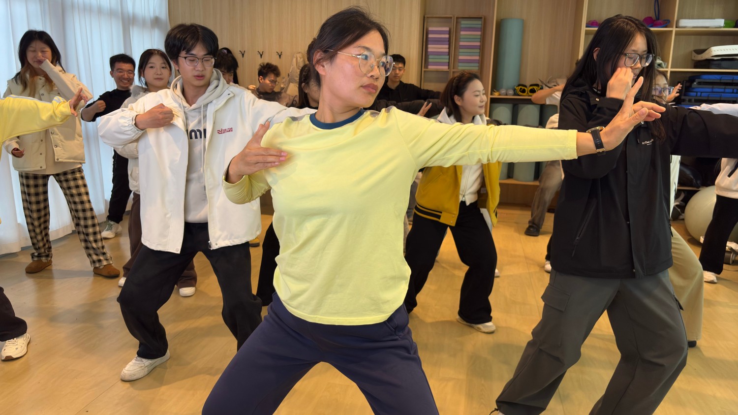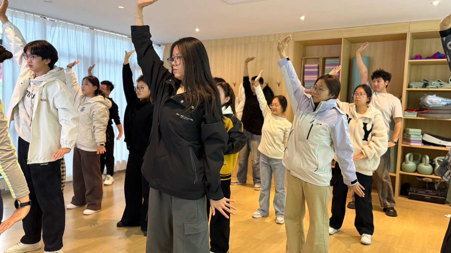 风从十一月的枝头掠过,将毣谷书院的玻璃窗敲得轻响。对于被学业裹挟的我而言【八段锦养生初体验】系列活动恰似一剂温柔的解药,从瑜伽室到蘑菇·天台,再到左右·青春排练厅,用传统功法的韵律,解锁了身心放松的密码。