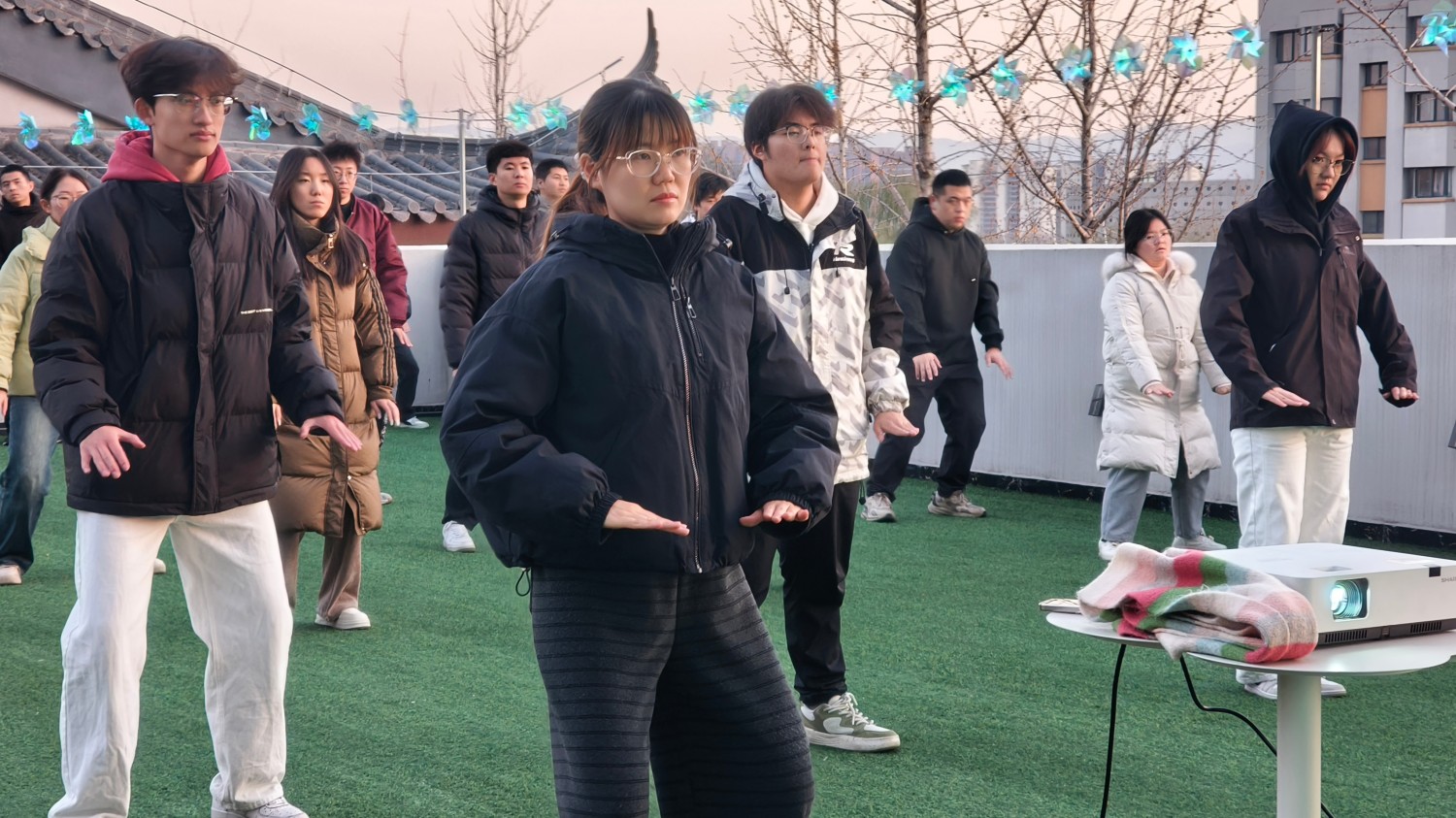 三场活动,三位老师,三种心境,却有着同样的温暖底色。从瑜伽室的初窥门径,到天台的渐入佳境,再到排练厅的融会贯通,这个月,我不仅学会了一套八段锦功法,更找到了与自己和解的方式。这场跨越三周的养生之约,不仅为繁忙的校园生活注入了宁静与松弛,更让中华传统武术的智慧在我心中生根发芽。当我带着舒展的身心回归课堂,这场温柔的解锁,已然成为成长路上最珍贵的馈赠。