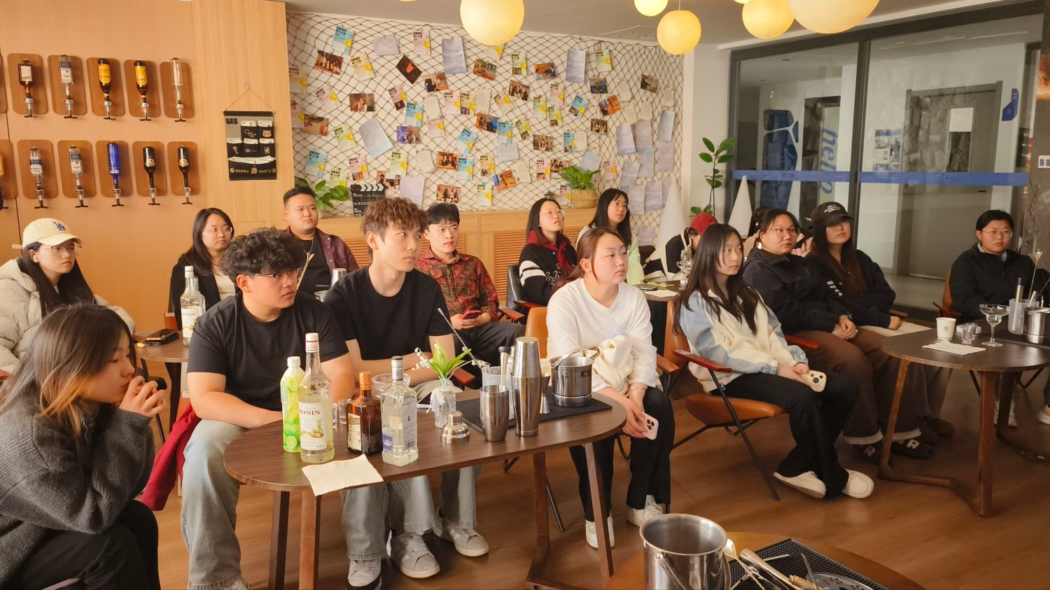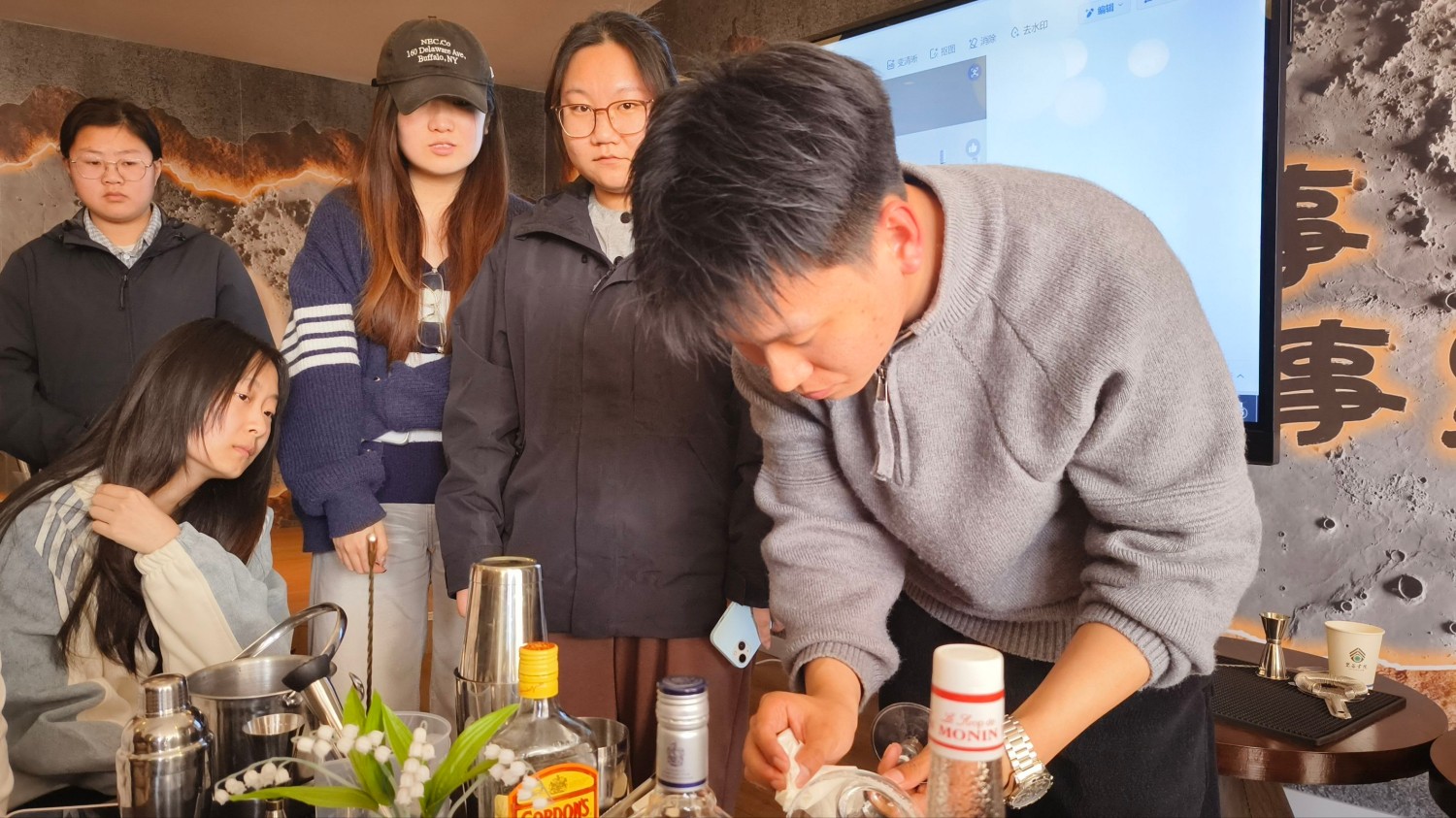 当一周忙碌步入尾声,为帮助大家放松身心、舒缓压力,2F故事·酒馆,周五“酒”等了系列活动如期而至。午后,同学们走进温馨的故事·酒馆,在舒缓的氛围中开启活动。酒店商务产业学院学长现场教学,同学们亲手调制,分享日常趣事与心底烦恼,在酒香中卸下一周的疲惫与紧绷。当真心话大冒险游戏开始时,持续升温的现场氛围让平日里拘谨的同学也纷纷放开自我,在玩笑声中敞开心扉,释放情绪。阳光洒落,酒杯轻碰,微醺的惬意与热闹的互动相融,让大家在轻松的氛围中舒缓身心,尽享休闲时光,也为一周的忙碌画上温暖句号。