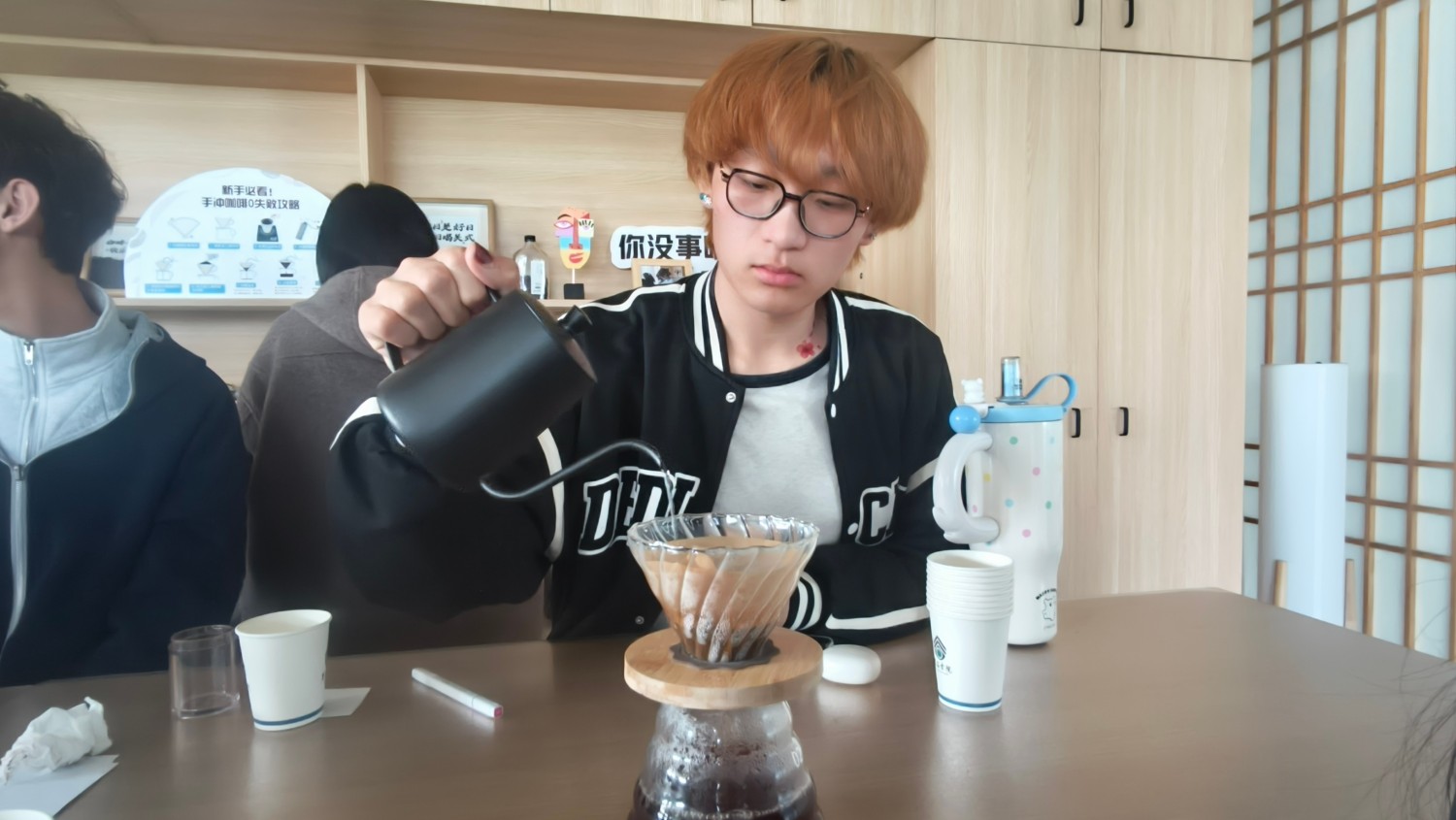周三午后,咖香与欢笑相伴,两期“咖”蓄力活动在3F半杯·故事馆温馨开启。紧张刺激的狼人杀与谁是卧底轮番上演,一场脑力与演技的巅峰较量就此拉开。同学们巧妙隐藏身份、缜密推理分析,用语言藏匿秘密,凭逻辑锁定对手,在“唇枪舌剑”中突破迷局,每位参与者都在游戏中收获乐趣。游戏结束后,同学们研磨冲泡,解锁专属咖啡风味,以咖啡渣为墨,创意绘出小蘑菇、笑脸小人等可爱图案,用小巧思寄托对生活的美好祝愿。香醇咖啡、趣味游戏与温暖陪伴,让平凡午后变得鲜活又治愈,也为日常增添了一抹温暖与诗意。