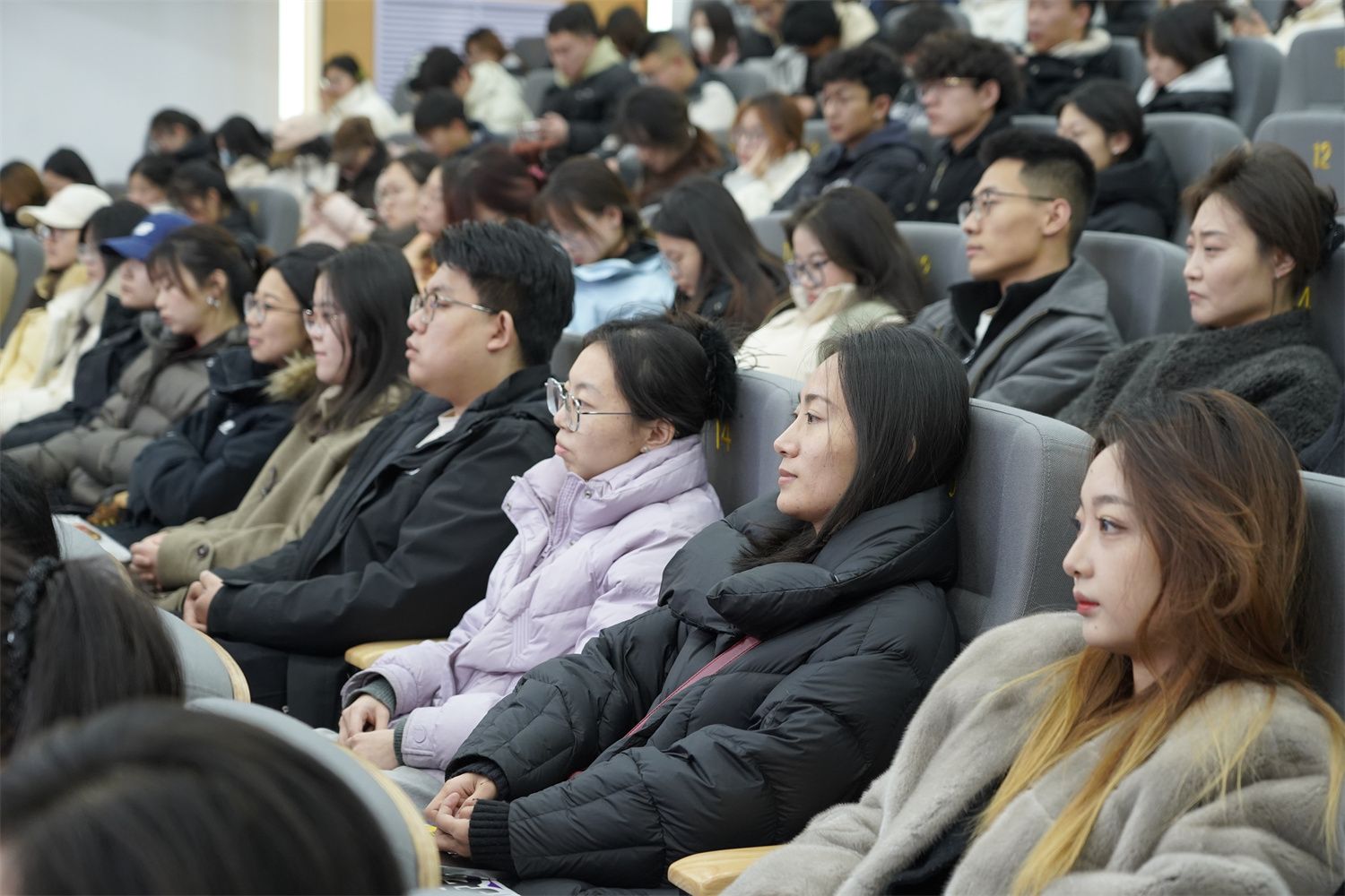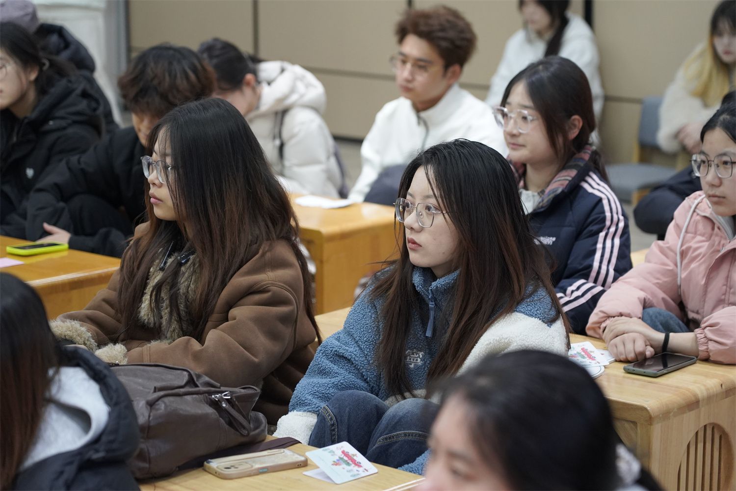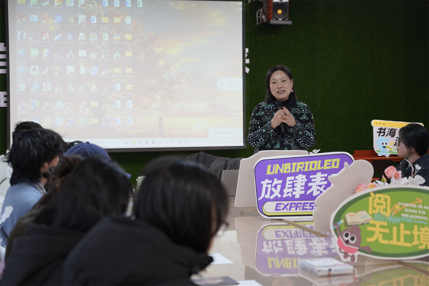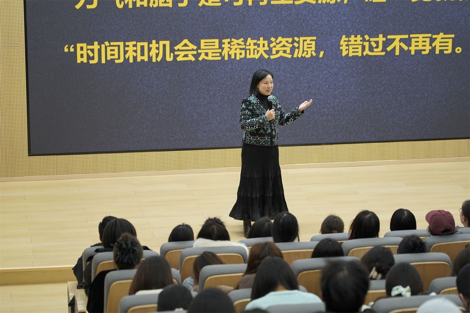 “不用仰视书籍或作者,重点是反思书中观点能否为我所用,做法能否借鉴,找到一个鼓励你行动的点,这本书就很宝贵。”北北老师的阅读心得,打破了许多人对“读好书”的固有认知。她指出,很多人过度聚焦于“如何读好一本书”,反而让自己在阅读中背负了沉重包袱。活动现场,北北老师还结合个人阅读习惯,分享了她的实用心得与深刻思考,并盛赞学校“自由土壤”的育人氛围:“这四年是走上社会的缓冲期,要随心所欲试错,发挥主观能动性,让每一本书、每一段路都成为你身上的特质。”她以《彭蕾传》为例,剖析了转身跨界带来的无限可能,结合职场成长逻辑,为学子们提升个人能力提供宝贵的经验借鉴。
