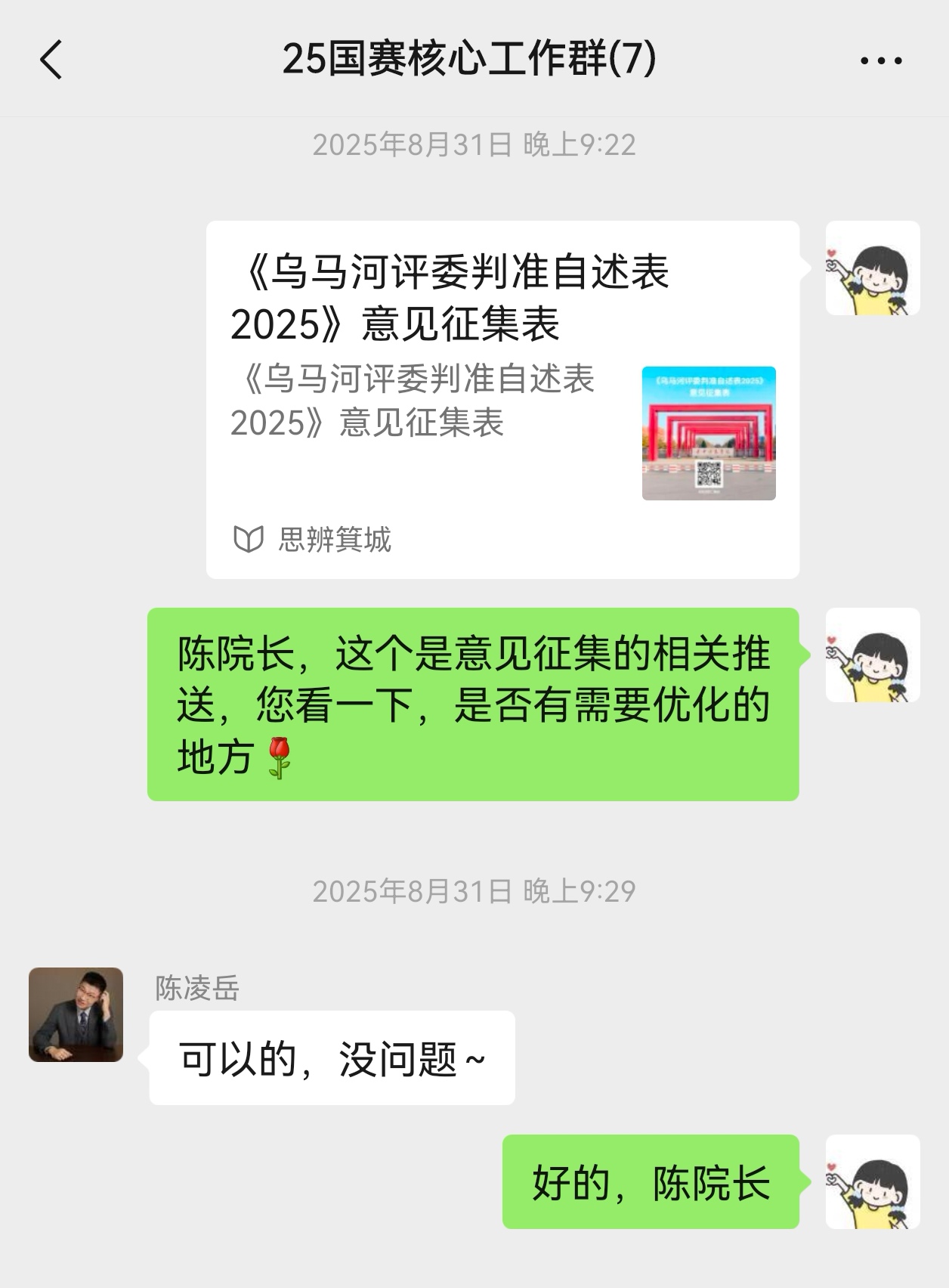 9月1日,陈凌岳院长与组委会核心成员共同研讨、设计评委自述表。逐项梳理自述表内容框架,经过多轮修改,最终形成了一份结构清晰、指标明确、操作性强的标准化自述表模板,为后续队伍报名与资格审核提供了规范依据。