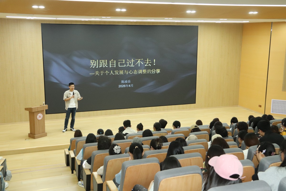 ST报告厅内,陈凌岳院长开展“别跟自己过不去”大学生成长与人生规划专题讲座。结合自身求学、工作与心理调适经历,他围绕拒绝内耗、接纳自我、理性规划、即刻行动四大核心分享心得。“迷茫代表拥有选择,不必过度焦虑;要认清自身兴趣与能力,不盲目跟风考证、考研、考公。”陈院长强调,平凡不等于平庸,应找准定位,用行动打破拖延与内耗。