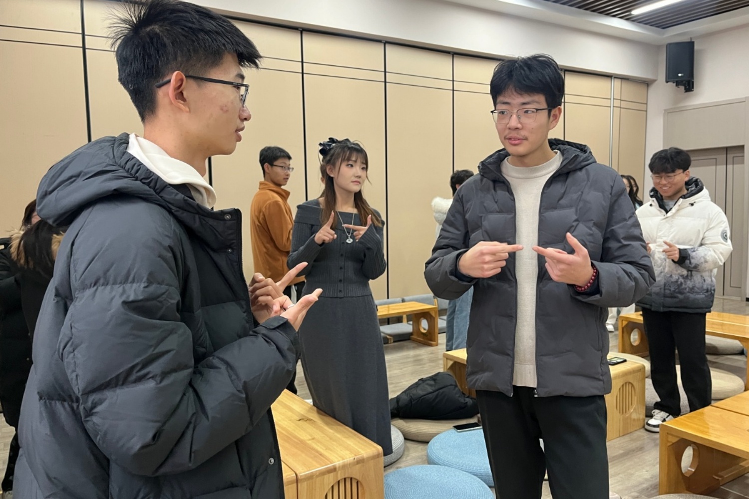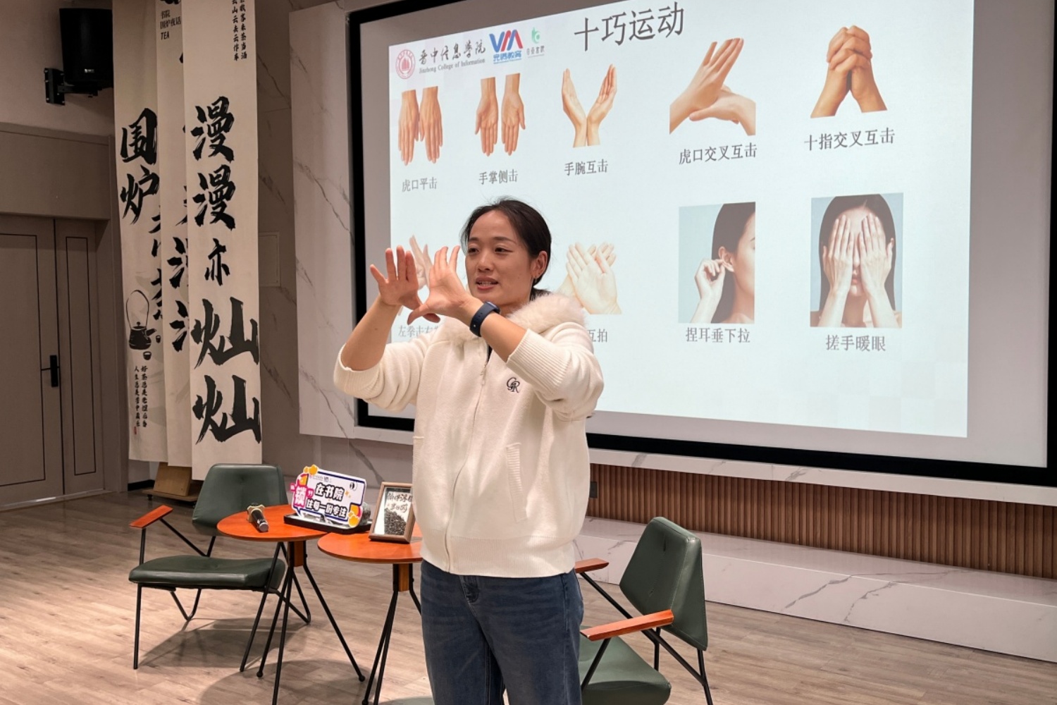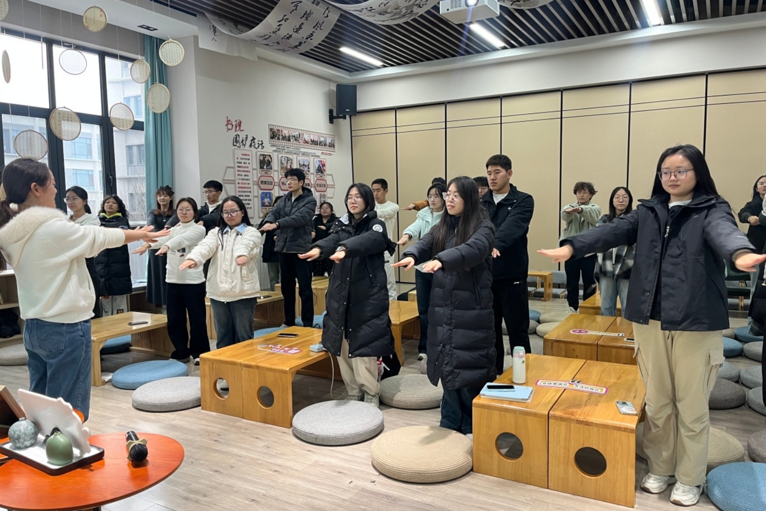 “请大家伸出手,跟随节奏拍打虎口穴位。”在刘采梦博士的引导下,一场关于“专注力”的团体辅导从身体感知开始。简单的“一”与“八”手势切换游戏,迅速让现场气氛活跃起来,也让同学们第一次直观感受到注意力集中与分配的微妙挑战。“我以为很容易,结果一做就乱。”刘卫佳同学的话道出许多人的心声。
