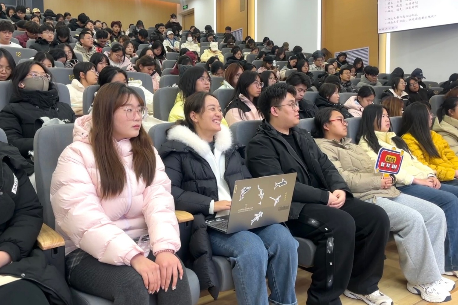 “我们这代人常被说躺平、内卷,但背后是不是一种意义感的失落?”喻丰教授引出的话题引发许多同学的共鸣。在互动环节,贺婷同学提问“在多元价值中,我怎么知道自己选择的路是有意义的?”教授鼓励大家进行主动的“意义建构”,通过理解自身经历、设定真诚的目标、采取负责任的行动,并在反思中不断调整。“意义不是找到的,是你在认真生活、勇敢选择中一点点构建出来的。”整场讲座不仅提供了理论视角,更传递出一种温暖而坚定的力量,成长意味着接纳生命整体的复杂,包括其中的困惑与艰难。