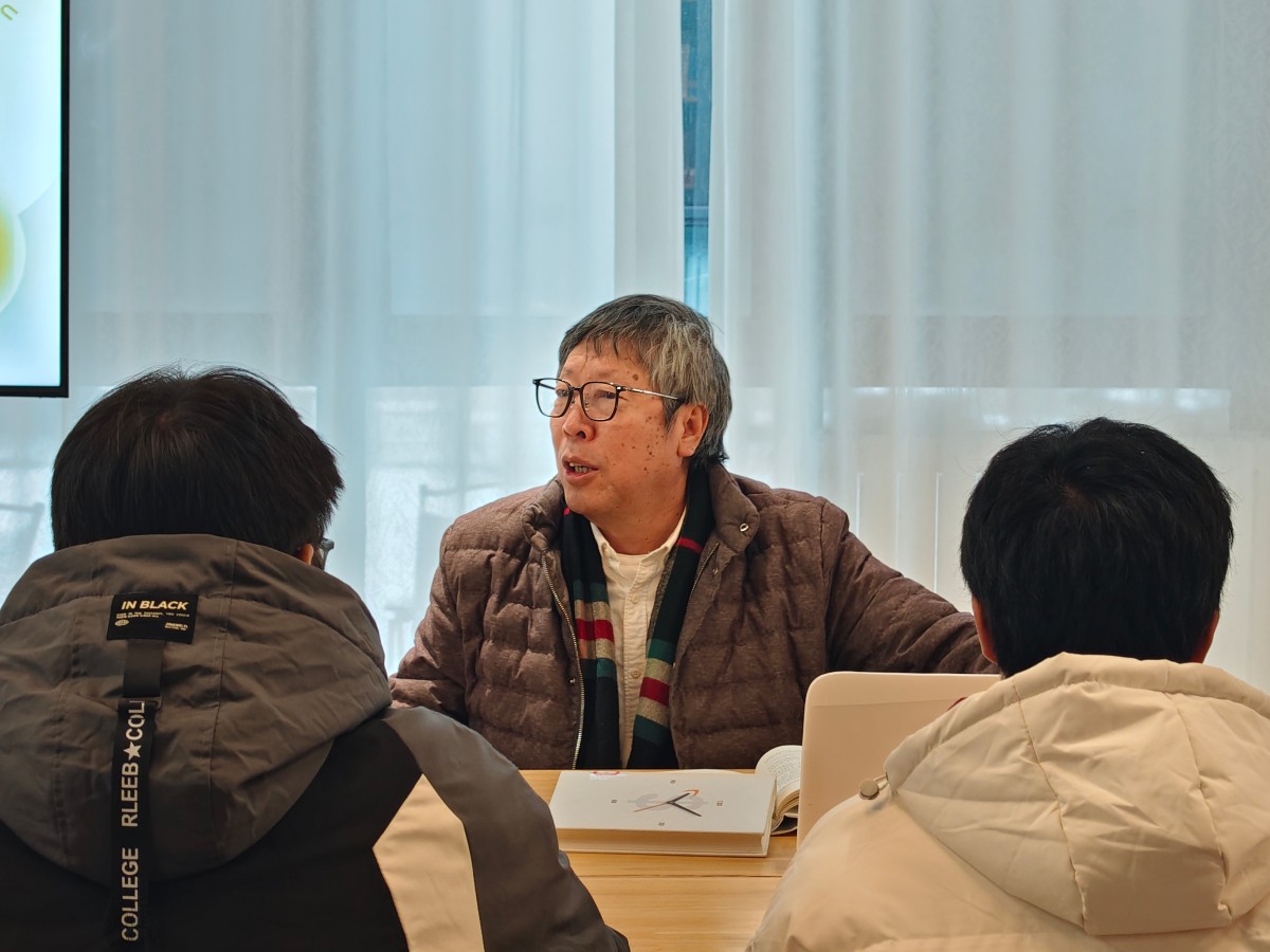 随后,活动主场移至上河书院106 览舟·大咖书屋。四组学生已在热烈讨论中完成了首轮作品推选。一张题为《雨夜自习室》的照片引发全场凝视——玻璃窗上雨水蜿蜒,映出室内暖黄灯光与伏案身影,虚实交织,宛如梦境。张院长点评道:“这张照片胜在‘双重曝光’式的心理结构。窗外是自然的流动,窗内是生命的静守。它不在记录场景,而在诉说一种存在状态。”他进一步剖析:“很多人拍手机照片只关注‘我看到了什么’,但艺术家要问的是‘那一刻我在感受什么’。”